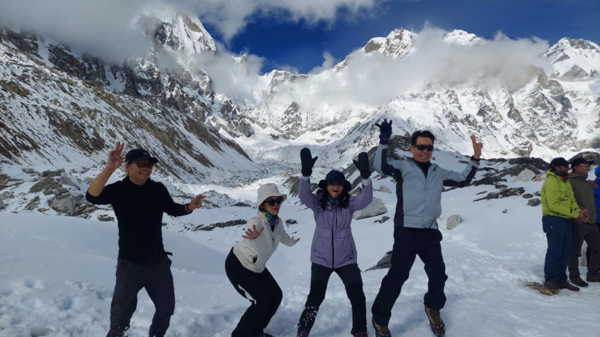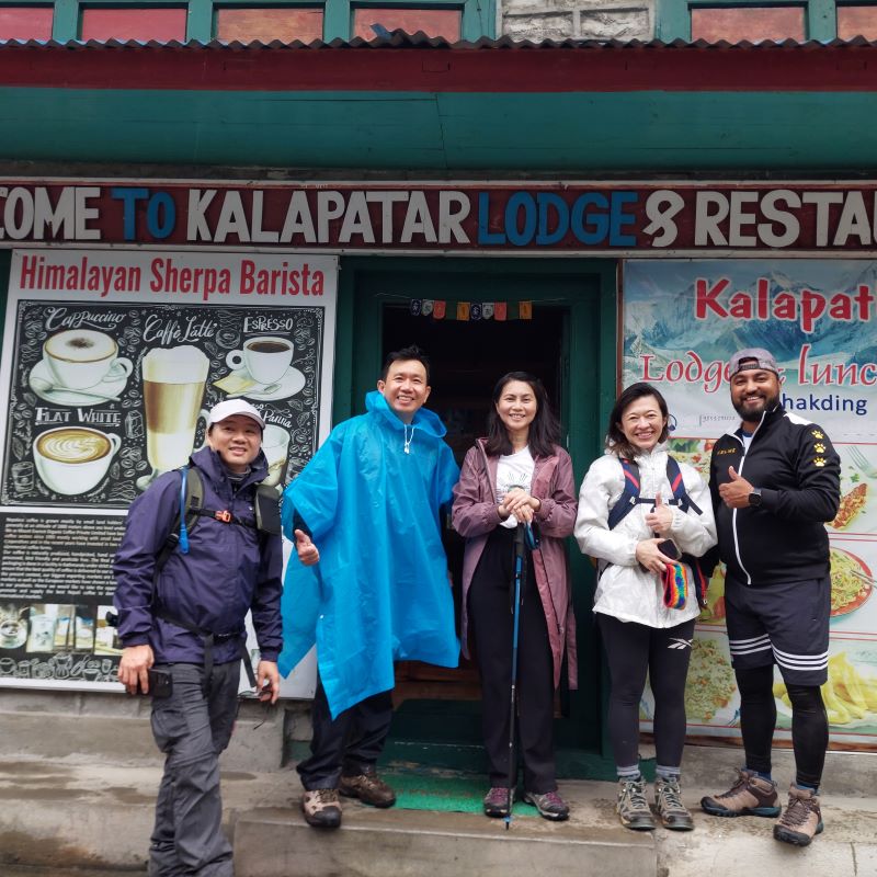 One of our Malaysian friends, though slower due to altitude, decided to fly out by helicopter from Gorakshep the next morning — a joyful and well-deserved ending to her trek.