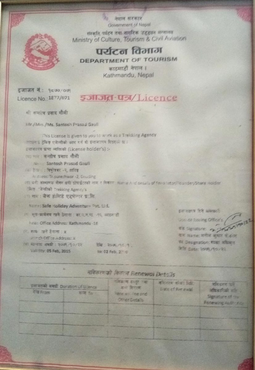 Hello, my name is Santosh Gauli, and I am the Managing Director of Safe Holiday Adventure Pvt. Ltd, a tour and travel company that specializes in organizing treks and expeditions in the Himalayas of Nepal. With over 18 years of experience in the tourism industry, I have a deep understanding of the challenges and opportunities of operating in this dynamic and exciting field.